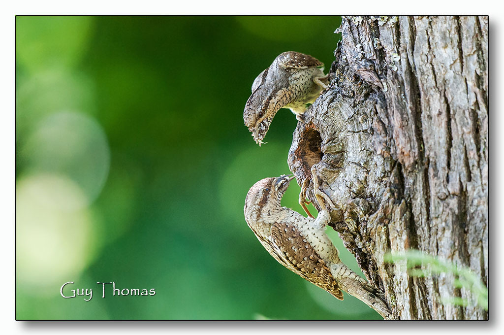 Les torcols fourmiliers terminent leur nourrissage dans le nichoir