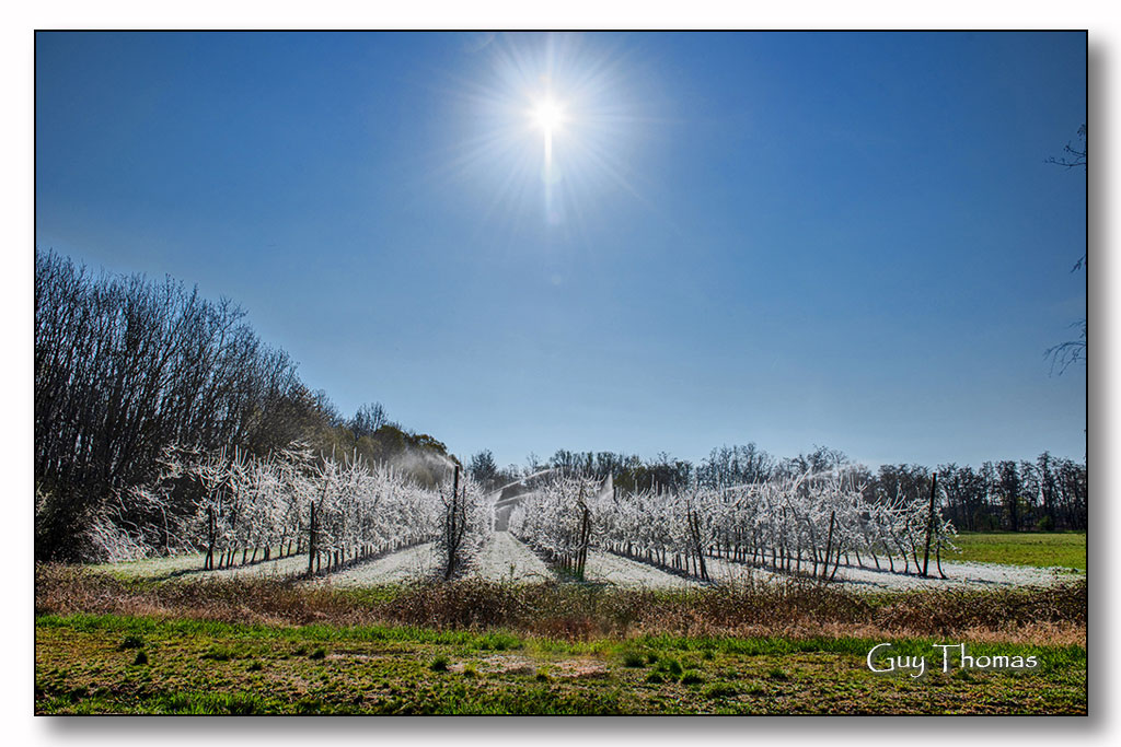 Le contraste est saisissant avec les arbres en jeunes pousses de l’arrière