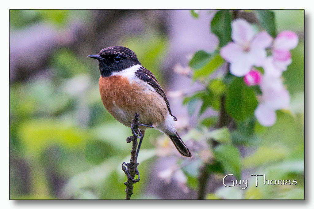Le tarier pâtre male a enfin pointé son bec, un peu tard, mais c’est joli dans les pommiers en fleurs